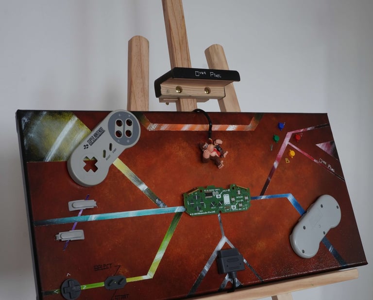 Imaginez un tableau qui devient une véritable machine à remonter le temps, un portail magique vers une époque où les pixels, les héros en 8 bits et les gadgets mythiques étaient au cœur de nos vies. Pixel Heroes, c’est bien plus qu’une œuvre d’art : c’est une aventure visuelle où peinture et sculpture s’entrelacent pour créer une explosion de couleurs et de références geek.
